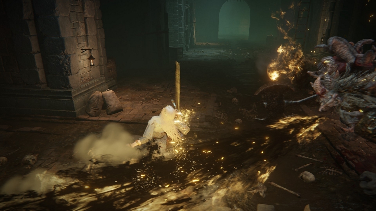 呪われた絶叫を上げる戦技「ミエロスの絶叫」も、同じ黄黒色のエフェクトを放つ。